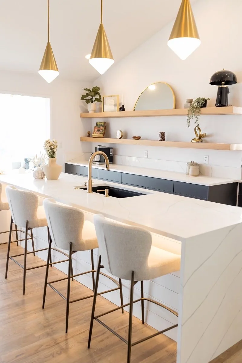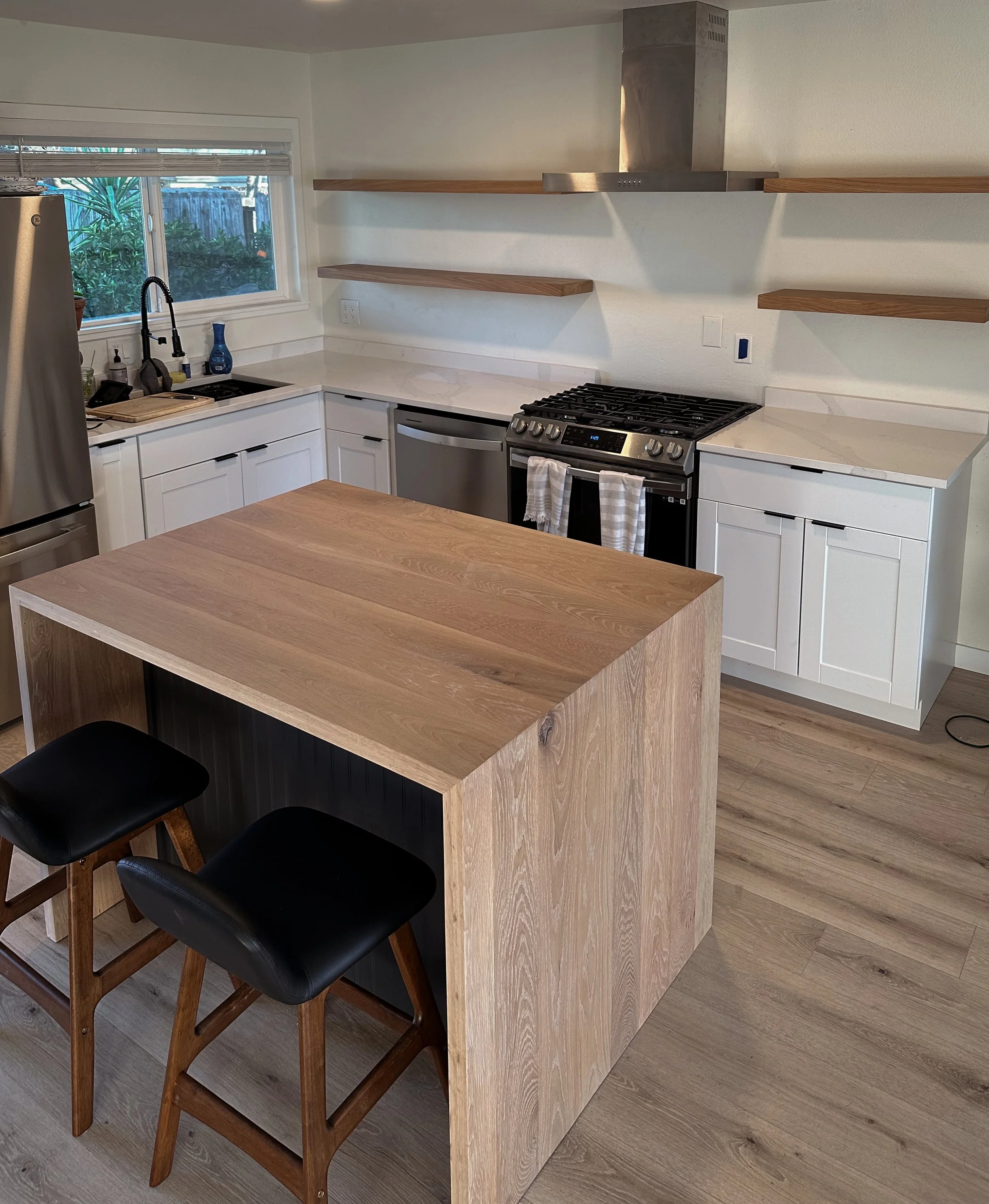 Floating shelves with double waterfall edge island - White Oak View fullsize