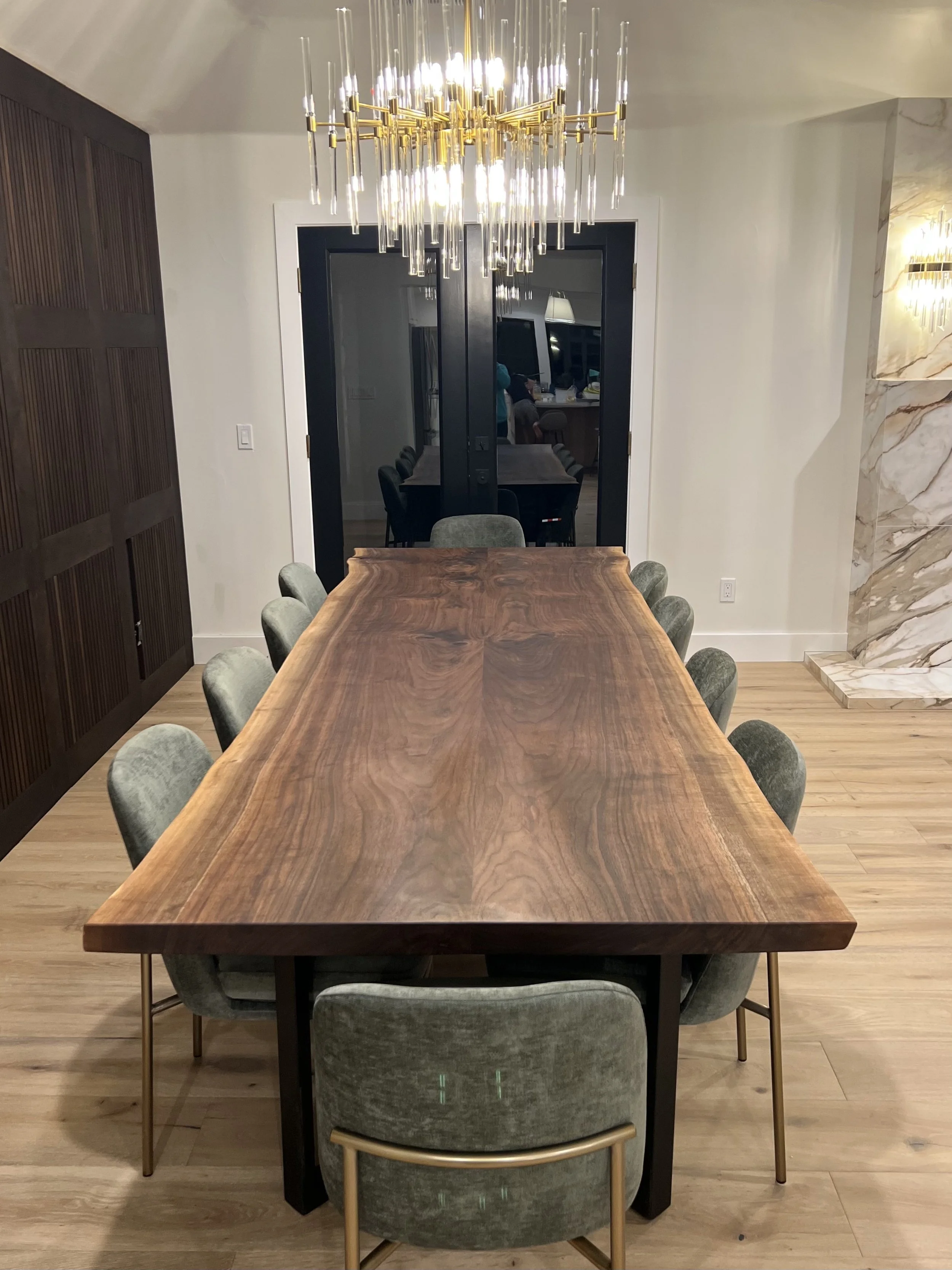 Live edge book matched twin slabs with black steel legs - Oregon Black Walnut