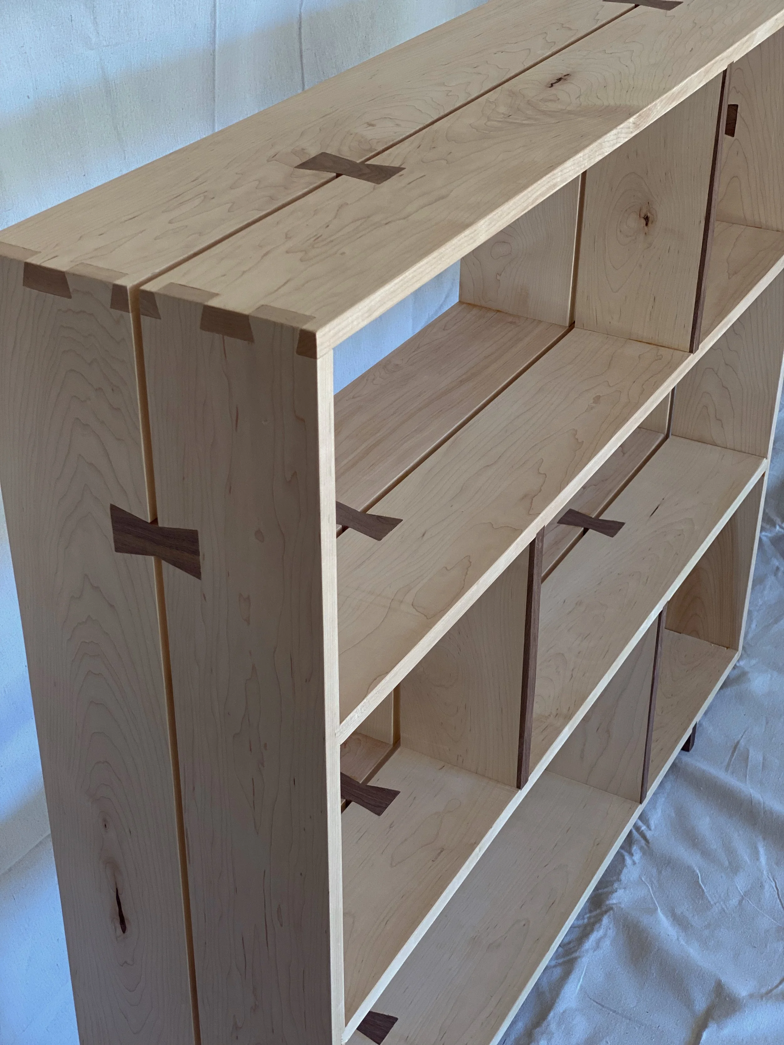 Dovetail + bowtie bookshelf - Maple with Walnut accents